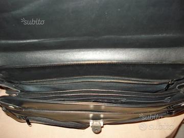 Vendo borsa da lavoro NAVA in pelle nera con serratura usata pochissimo, composta da due scompartimenti interni uno posteriore con chisura a velcro e due anteriori con chiusura lampo.
