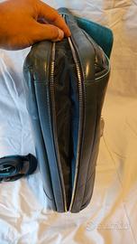 BORSA DA LAVORO PIQUADRO, BLUE IN PELLE, USATA, CONDIZIONI.....COME DA FOTO. LA BORSA E' COSTITUITA DA DUE AMPI SCOMPARTI CENTRALI: