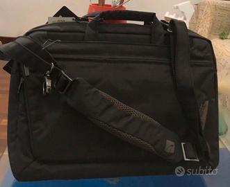 Cartella per MacBook Pro 15.4 e notebooks 14”, nera in materiale ultraresistente. Vano antiurto per pc e tasche ben organizzate per gli accessori. Tasca su retro per aggancio al trolley. Tracolla regolabile e removibile. Nuovo con cartellino e busta in cellophane con logo Tucano. Tutte le descrizioni delle misure e delle caratteristiche in foto. Unisex.