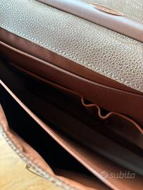 Borsa da lavoro uomo Bric’s nuova, di pelle scamosciata di colore marrone chiaro con tracolla più due scomparti dentro e una tasca esterna misura cm 40x30x12