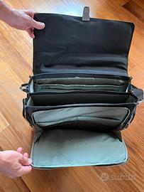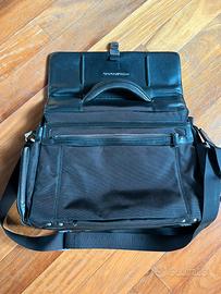 Borsa da lavoro marca Piquadro in pelle e tessuto nero con maniglia e tracolla regolabile, molte tasche interne di cui una porta computer. Tenuta bene a parte una cucitura interna un po’ logora che si vede in foto