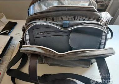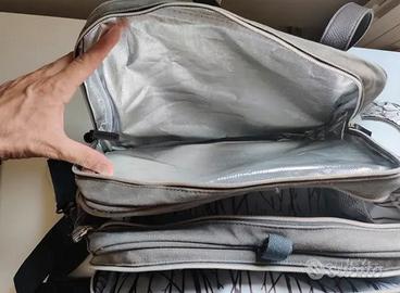 Borsa da mamma con scomparti per trasportare tutto l'occorrente per lattanti e bambini. uno scomparto è anche rivestito per tenere il caldo o il freddo. dotato anche di tappetino impermeabile per il cambio del pannolino, ha la tracolla oppure si può portare a mano, ha 4 piedini in metallo per poggiarla per terra. estremamente capiente