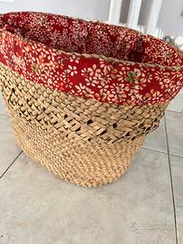 Borsa da mare in paglia con interno in tessuto (cotone) Manici lunghi per tracolla possibilità di chiuderla con corda