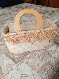 Vendo borsa di paglia da mare o picnic nuova con chiusura in cerniera e manici in legno come da foto misure lunghezza cm 37
