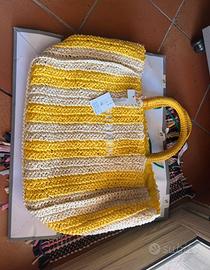 Borsa da mare intrecciata Sundek gialla Borsa con pochette abbinata Nuova mai utilizzata, ancora con cartellino (regalo indesiderato)