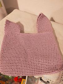 Borsa a polso realizzata all'uncinetto con cordino colore glicine.