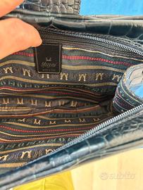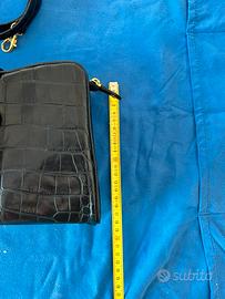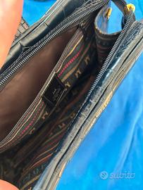 Borsetta da sera Mazzini, colore nero, costituita da un unico vano interno che si chiude con bella cerniera con logo. All'interno bella fodera che riproduce una fantasia con il logo della maison, con una taschina interna chiusa con cerniera. Il logo è riportato anche sulla fibbia che chiude la borsa (con il classico bottone magnetico). La tracolla è amovibile per consentire di trasformare l'accessorio in pochette. Dimensioni 29x19x5,5 cm. Non ha segni, abrasioni o graffi: oggetto in condizioni eccellenti.