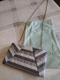 Borsa da sera o da cerimonia marca Menbur.. Un lato a righe e un lato tinta unita, completa di catenella.. Usata una volta.. Praticamente nuova...