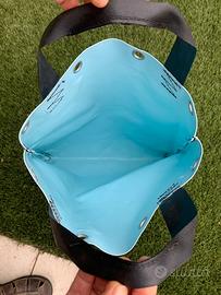 Vendo borsa da spalla o da mano in PVC 900g azzurra con manico cinghia in PVC, portata oltre 30kg.