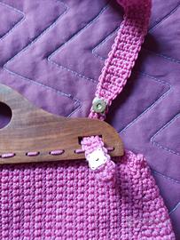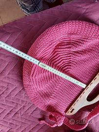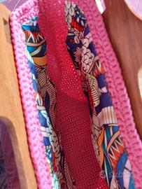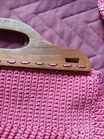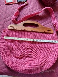 borsa da spiaggia con manico in legno interamente fatta a mano in cordino. doppio indosso a mano e tracolla ( removibile). tengo a presare che la tracolla impedisce di aprire la borsa , per cui va " sganciata". mai utilizzata