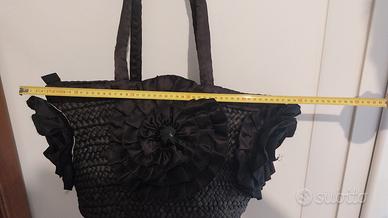 bellissima e particolare borsa Leopard da spiaggia in paglia nera, foderata in cotone,chiusura con zip, tasche interna una con zip,, comoda e capiente, in ottimo stato, acquistata a Milano Marittima