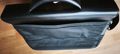 Borsa da ufficio Mandarina Duck in pelle e tessuto. Caratterizzata da tasca esterna porta pc e da due scompartimenti interni non è mai stata utilizzata e non presenta graffi sulla pelle.