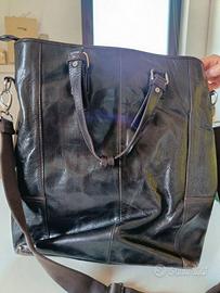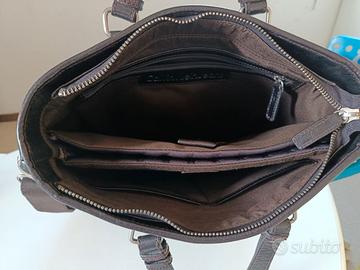 Borsa da uomo da pelle colore testa di moro con tasca esterna e porta computer interno. Tracolla e manici .
