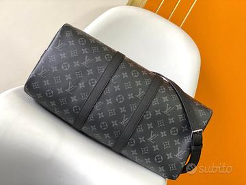 La borsa da viaggio Keepall è realizzata nella nuova iconica tela Monogram Eclipse nera e grigia. Dal 1930, la serie Keepall ha accompagnato generazioni di viaggiatori in tutto il mondo. Questa nuova versione presenta diversi comodi manici in pelle, una tracolla per un look a tracolla rilassato e un lucchetto lucido, che la rendono la compagna perfetta per i viaggi brevi. Dimensioni: 45,0 x 27,0 x 20,0 cm