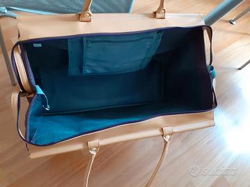 Borsa da viaggio marca David Jones . Nuova . Mai usata . Colore prugna rifinita in beige. Tasca esterna con zip e piccola tasca interna con zip. 5 piedini d'appoggio. Mis. 30x54x37.