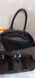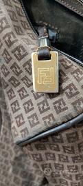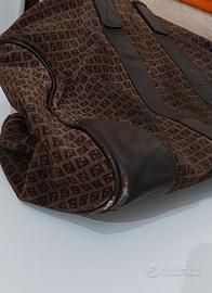 BorsaFendiin pelle marrone e scamosciata con l'iconico monogramma FF, noto come motivo "Zucca" o "Zucchino". Usata negli anni 80/90. In discreto stato. Misure: Larghezza 40 cm Altezza 33 cm Manici 16 cm Profondità 21 cm Le parti in metallo sono un po' scolorite. Gli angoli della base di appoggio sono un po consumati. Manca una borchia sotto la base. Ricordo che prima degli anni '80 Fendi non indicava numeri seriali ai suoi oggetti (non era obbligatorio).