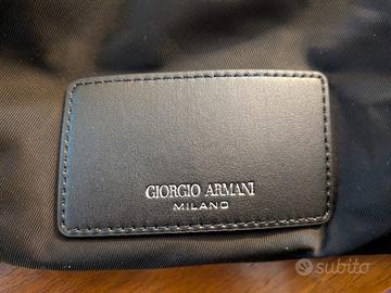 Borsa da viaggio Giorgio Armani mai utilizzata, in tela fatta con materiali riciclati.