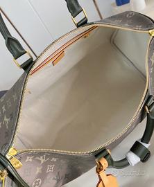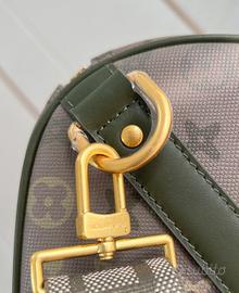 [Real Shot esclusivo M26959] Questa borsa da viaggio Keepall Bandoulière 50 è realizzata in tela Monogram Surplus con effetto camouflage, che mette in mostra l'interpretazione creativa di Pharrell Williams della classica tela Monogram del brand. Le finiture in metallo anticato e gli elementi in pelle evocano una rilassante fuga in campagna, mentre la tracolla in tessuto con logo, staccabile e regolabile, offre molteplici opzioni di trasporto. 29 x 23 x 50 cm (A x P x Lunghezza)
