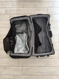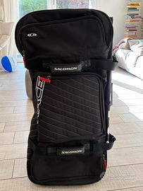 BORSA DA VIAGGIO - TROLLEY SALOMON VOLUME 130 litri Misure 81 lung x 44 larg x 39 h Ruote con cuscinetti Maniglia estensibile Maniglia imbottita 2 cinghie esterne di compressione Apertura a spacco 2 scomparti principali 1 tasca esterna con zip 1 scomparto posteriore 1 scomparto impermeabile per scarpe Materiale esterno cordura
