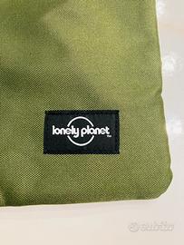 Borsa lonely planet color verde, con tracolla nera a lunghezza regolabile. Tasca esterna anteriore con chiusura in velcro. Tasca centrale con chiusura zip, all’interno la borsa e’ foderata di tessuto verde e presenta un’ulteriore tasca con chiusura zip.