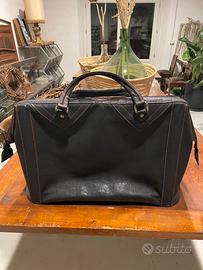 Borsa da viaggio in similpelle color grigio antracite e cucitura in rosso. Completamente foderata. In perfette condizioni. Dimensioni: cm. 53x28x35H