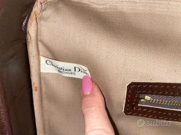 Borsa da viaggio vintage Christian Dior in tela jacquard oblique e pelle marrone -