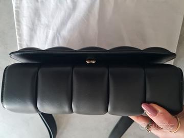 Nuova- tracolla regolabile non removibile, interno tasca centrale e due piccole una con zip.