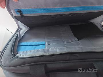 Possiede scomparto dietro per metterla comodamente sulla valigia (come da foto).
