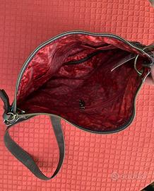 Borsa DESIGUAL BROOKLYN BOLAS ROJAS Verde Leanor piatta e arrotondata, colorata con motivi a rosette impreziositi da ricami e piccoli petali con inserti di metallo, iscrizioni dorate, in tessuto e pelle. Misura 30 cm x 27 cm può essere indossata a tracolla (regolabile e rimovibile) e presenta una tasca con cerniera e una patta magnetica arrotondata sul davanti e tasche a filetto posteriori con una targhetta metallica con marchio. Altre tasche all’interno.