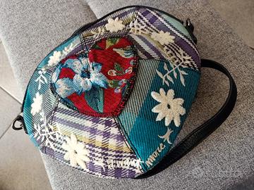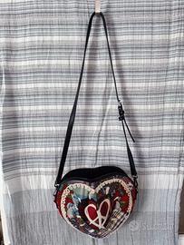borsa Desigual a forma di cuore con i lati di colori diversi e tracolla in pelle nera praticamente nuova