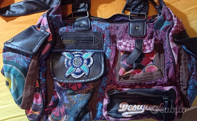 Vendo borsa da donna, marca Desigual, con manici e tracolla regolabile, tasche interne, esterne e laterali, multicolor e in tessuto. Larghezza 50cm, altezza 32cm e profondità 17cm.