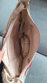 Borsa DESIGUAL usata 1 volta per un matrimonio. Con cinturino per tracolla ancora chiuso. Color beige e motivi floreali ricamati. Si può ingrandire il fondo rendendola più capiente aprendo la cerniera. Misure: Larghezza 37cm e altezza 26cm. Prezzo: 30€. Galzignano Terme, Abano Terme, Saccolongo o Selvazzano Dentro (PD).