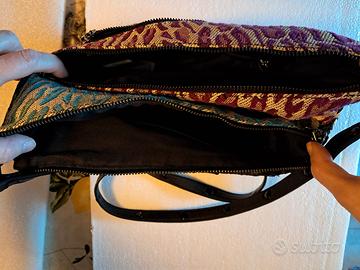 ' Doppia borsa ' a fantasia con tasche interne e tracolla xon punte in rilievo. H 19 L29 P10