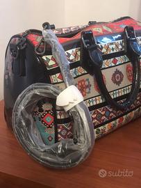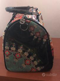 Borsa di vernice Desigual, a forma di bauletto, con tre taschine interne, di cui una chiusa con cerniera.