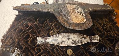 Borsa Desmo a braccio vintage. In pelliccia e pelli di rettile. Marrone con venature oro. Solo impercettebili segni di usura negli angoli in basso come nell'ultima foto