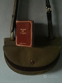 Borsa must di Cartier in pelle colore senape ed inserto in pelle bordeaux. Chiusura a pressione e tracolla. Con certificato di autenticità. Vintage