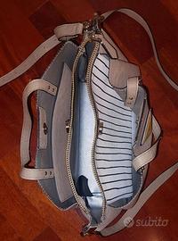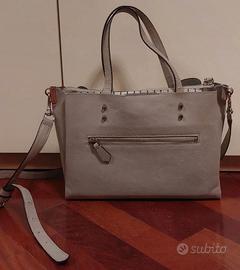 Borsa di GUESS, collezione primavera estate con un grande scomparto centrale con cerniera, due grandi scomparti laterali con chiusura a calamita e una taschina esterna con cerniera fornita di tracolla asportabile. Dimensioni: 20cm x 26cm x12cm