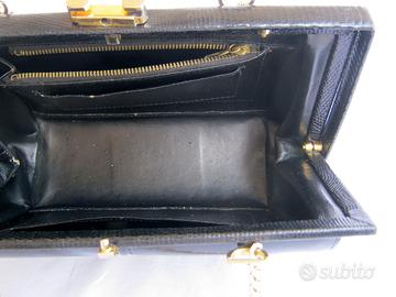 Si trova in condizioni eccellenti questa borsa di lucertola vintage . Ha le catene per la tracolla con la possibilità di intercambiarle con una coppia di manici come nuovi .