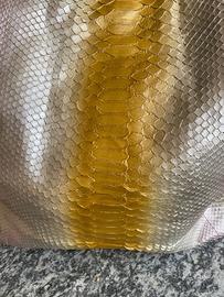 Borsa di pitone autentica nuova con cartellino collezione marca “queen bee” primavera 2024 rimanenza campionario , vendute in esculsiva per negozi di lusso in tutto il mondo, prodotta da me personalmente in quanto disegnatrice di moda . Colore e qualità eccelente. Vera occasione. Mix di colori rari.
