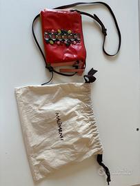 Borsa in pelle, bi-color: corallo e verde acido, con pietre stile Swarovski, con sacca protettiva originale