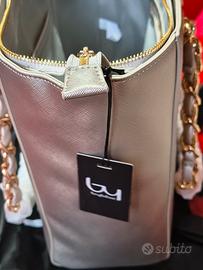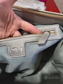 color argento la borsa e i manici metà catenella e metà simil pelle. Molto capiente, perfetta ed uscita dal negozio. con cartellini, tracolla, dust bag. elegante ed adatta alle 4 stagioni. stupenda ed elegante in ogni occasione!