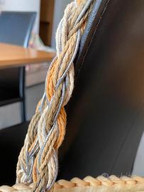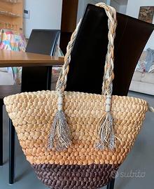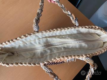 Borsa di paglia lavorata a mano Vendo bella borsa di paglia lavorata a mano in 4 colori Manico in corda intrecciata con filo di lurex Interno rivestito con tessuto chiaro chiuso da zip Lavorazione artigianale Ideale x la spiaggia o per le passeggiate sul lungomare come pure in città COME NUOVA