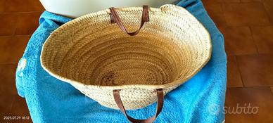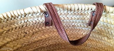 Bellissima borsa di paglia beige, intrecciata a mano.