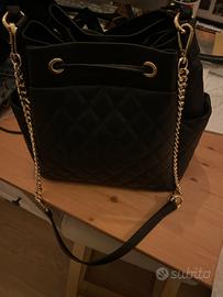 Borsa a sechiello trapuntata di vera pelle nuova com cartellino molto capiente