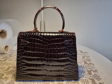 forma classica Hermes. fattura della borsa accurata fuanchi in coccodrillo,, tutta centrata, davanti e dietro.