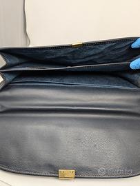 Vendo elegante cartella da lavoro in vera pelle, modello vintage, colore nero con inserti in cognac e chiusura in metallo dorato.