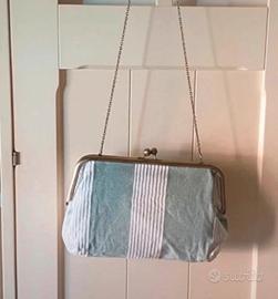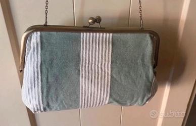 Borsa In stoffa chiusura modello "porta monete delle nonne". Da portare a tracolla con catena o a mano modello pochette.