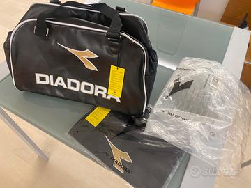 Vendo borsa marca Diadora, addatta sia per lo sport che per uso viaggio, colore nera scritta bianca, nuova mai usata ancora con etichette es imballo originale. Dotata di maniflie per portarla a mano e di bretalla da portre a spalle .