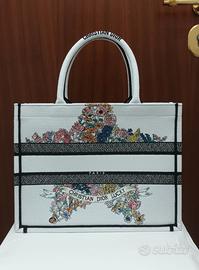 Borsa Dior book tote in tela ricamata multicolore misura media 36x27x16,5cm ottime condizioni perché tenuta in maniera accurata. Non presenta alcun difetto né macchia né strappi