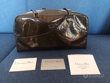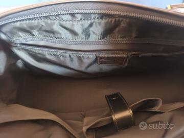 Borsa Dior, a mano o a spalla, perfetta poichè usata solo ad un matrimonio. Colore verde sottobosco, in pelle e con logo Dior ripetuto. Tasca esterna, tasche interne con porta cellulare. Munita di garanzia. Dimensioni: 33 cm. lunghezza x 18 cm. altezza x 11 cm. profondità.